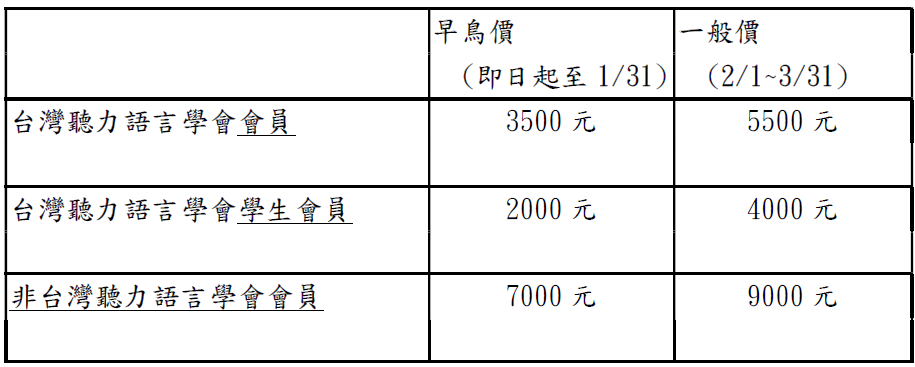 ★劃撥繳費:帳號:10895014,戶名:台灣聽力語言學會(請於劃撥單註明課程名稱)。